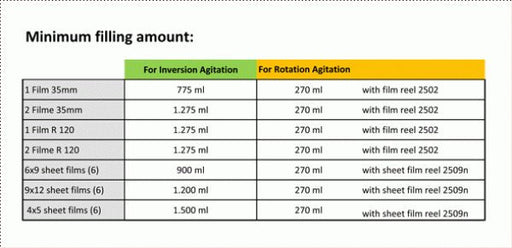 Inversion tank for either 1 or two films 35mm 1 or two films 120 or up to up to 6 sheetfilms 6x9cm up to 6 sheetfilms 9x12cm up to 6 sheetfilms 4x5...